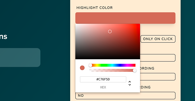 You can use the sliders or enter exact values to set the color that best fits your style or brand.