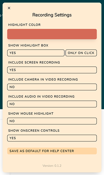 Selecting “Save as default for workspace” will save your changes as the default recording settings for the selected workspace. You can update this anytime from your Workspace Settings. This is available to workspace owners.