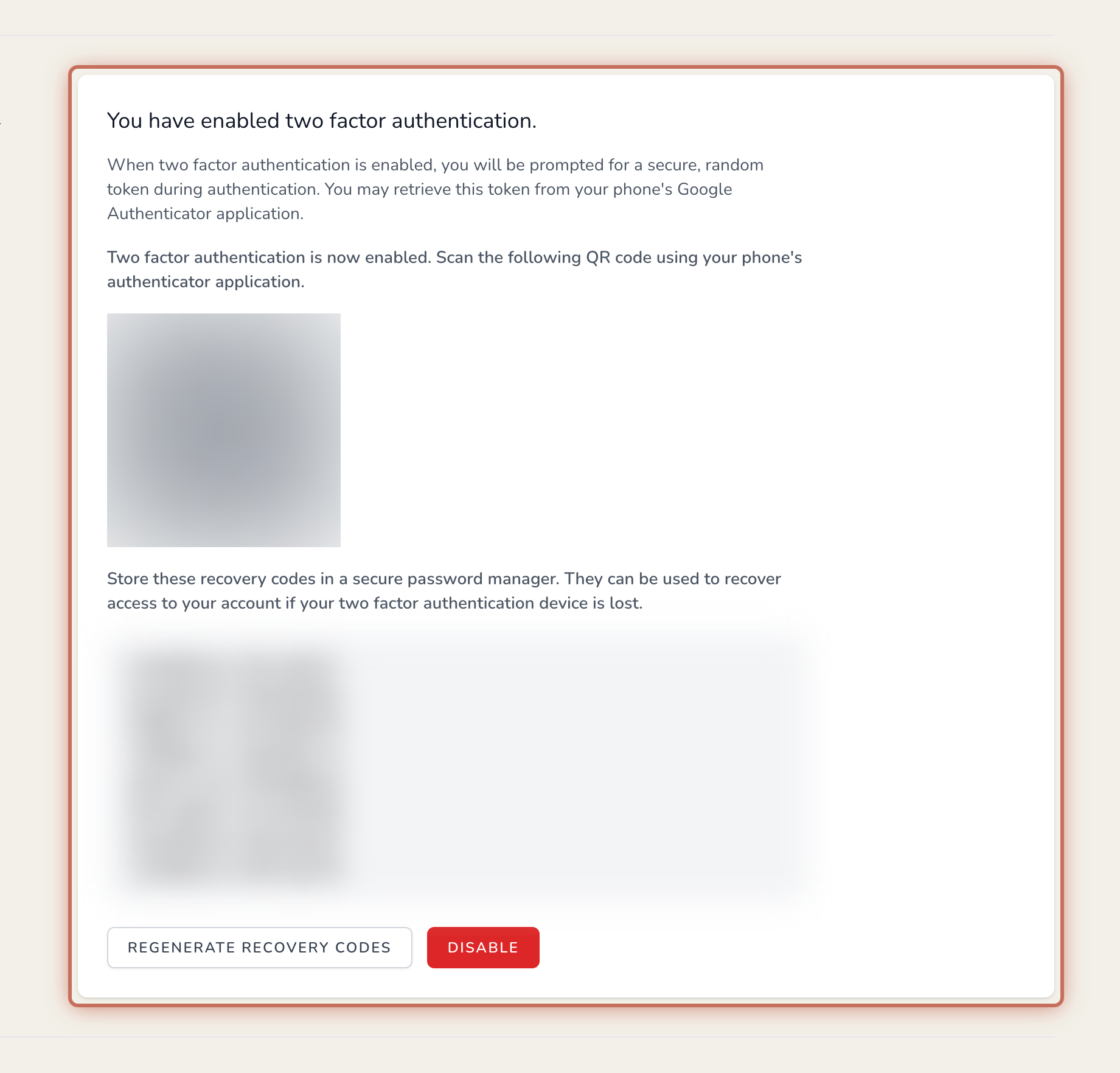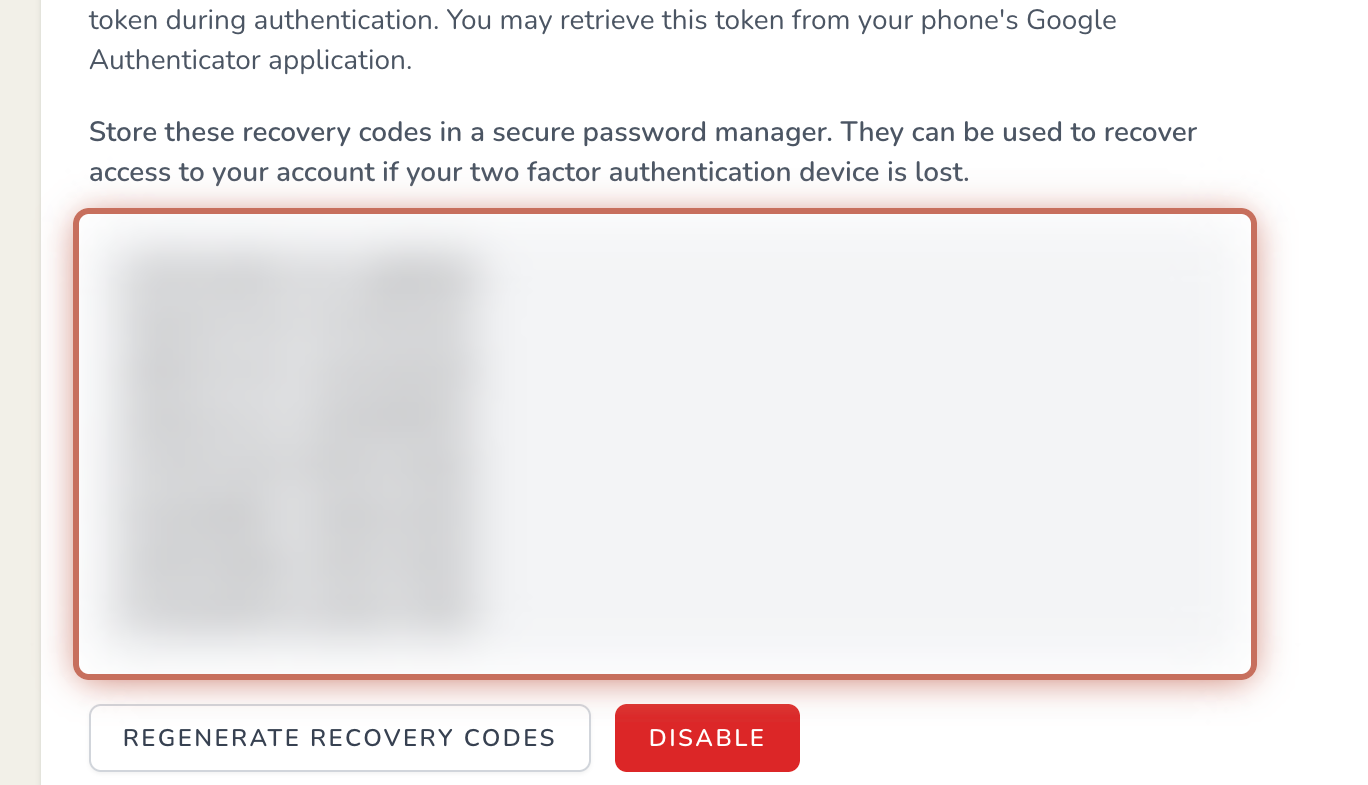 5. Scan the QR Code with a compatible app, such as Google Authenticator. Copy and store your recovery codes separately in a secure location.